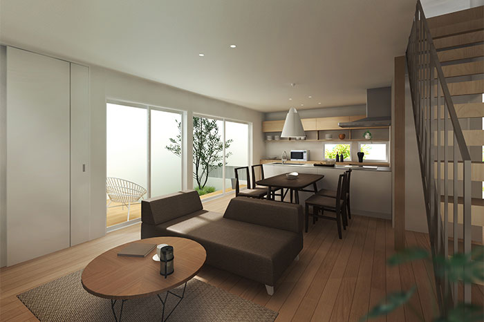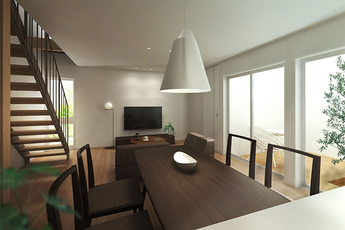 周辺環境を気にすることなく屋外を一体化できるスタイルの家です。趣味に没頭したり、家族や友人と自由な時間を過ごしたり、外から見えない中庭はまるで第二のリビング。自然の中で四季の移ろいを感じることができ、日々の生活がより豊かで充実したものに。